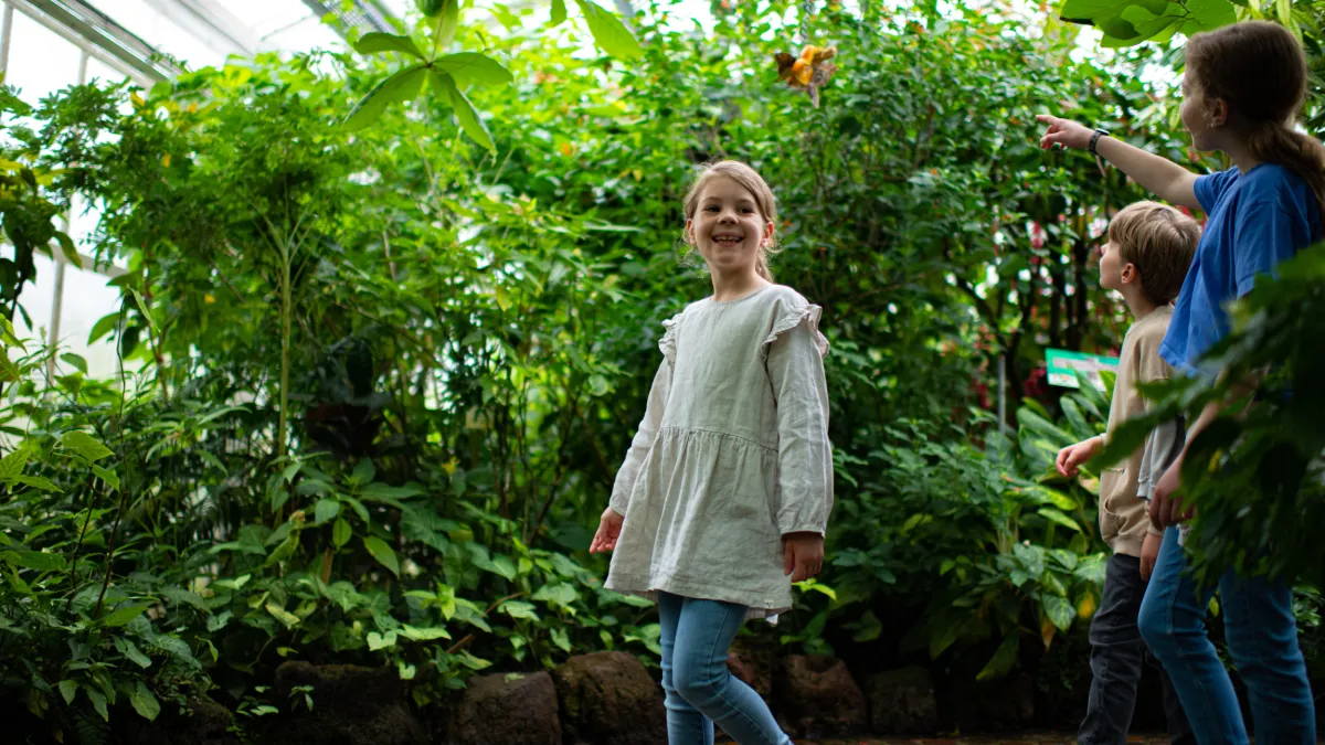 Kinder auf Entdeckungstour im Schmetterlingshaus