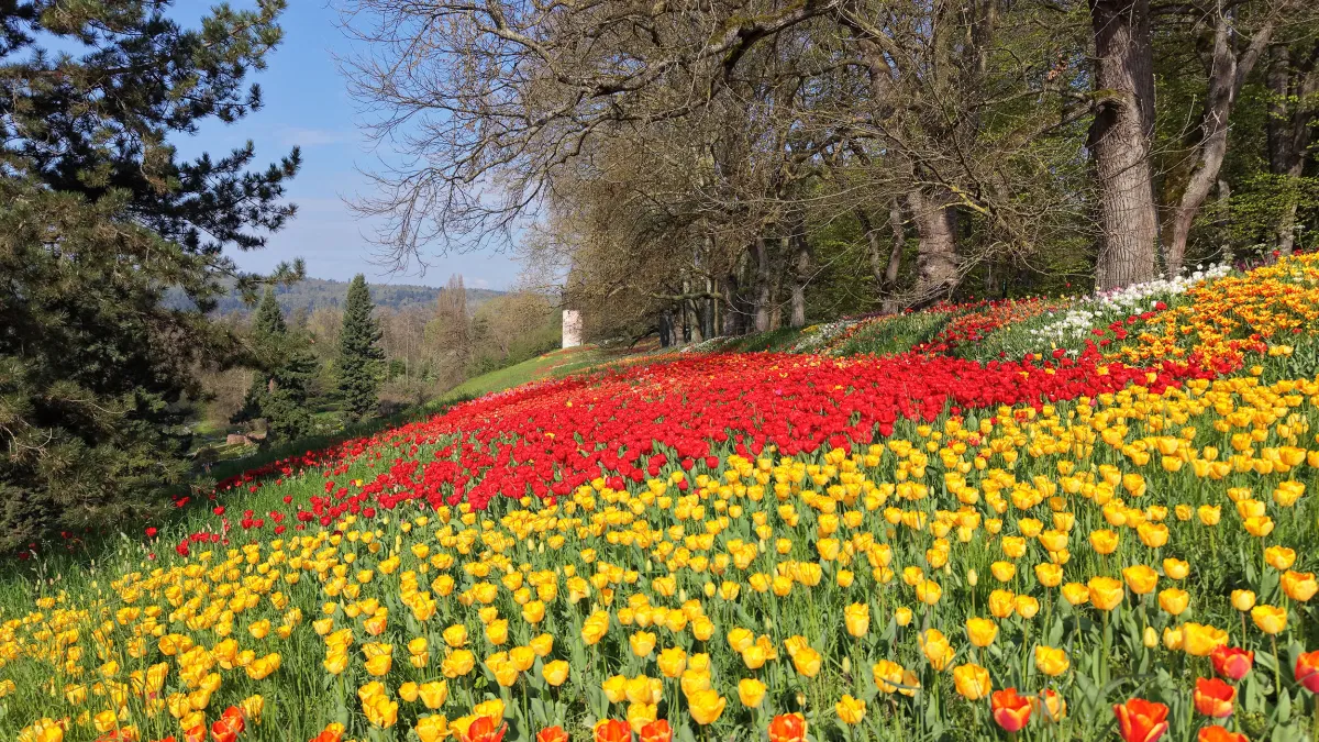 Wie weit ist die Tulpenblüte auf der Insel Mainau im Bodensee fortgeschritten? Mit unserem Tulpenbarometer verfolgen Sie den aktuellen Stand der Tulpenblüte auf der Südhangwiese in der Frühlingsallee. Mit steigenden Temperaturen entwickeln sich die Tulpen nun Stück für Stück weiter – ein regelmäßiger Blick in das Tulpenbarometer lohnt sich.